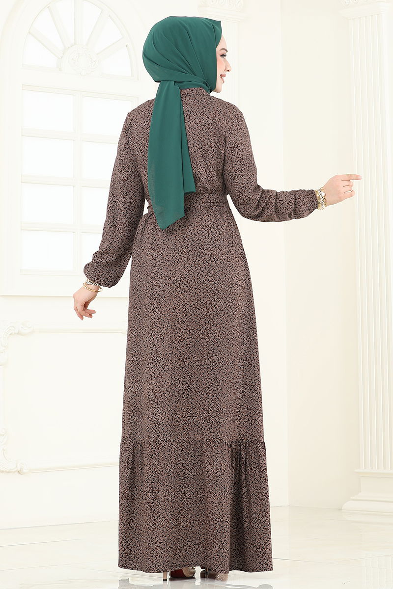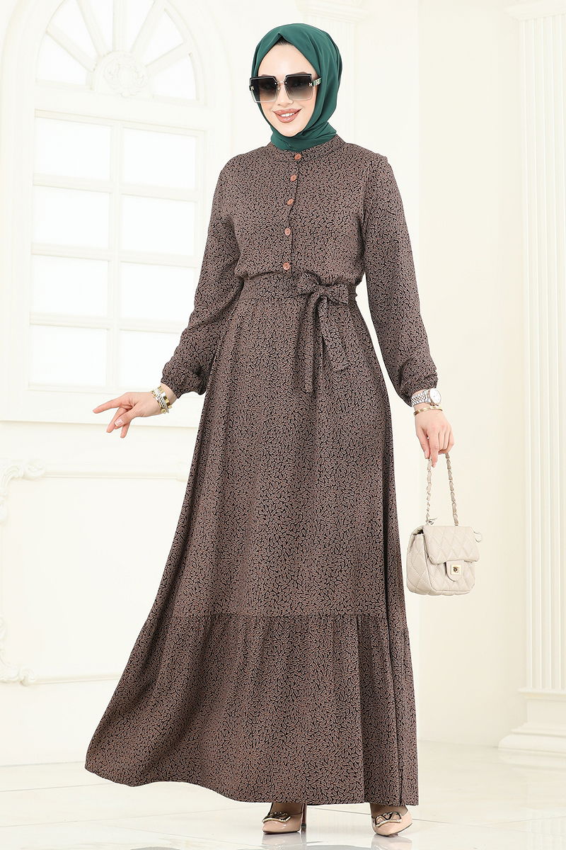Half-Buttoned Viscose Dress is a model of hijab clothing. It can be worn in spring and summer seasons. Hand washing is recommended. It is made of high-quality viscose fabric. The product has a half mandarin collar and front buttoned design. It is unlined. (The product on the model is size 38) The inner dress is worn over the head. The belt is sewn at both ends to prevent fluttering, and the middle part is left empty (seamless). The belt is included with the product but can be optionally used. The cuffs are elastic.