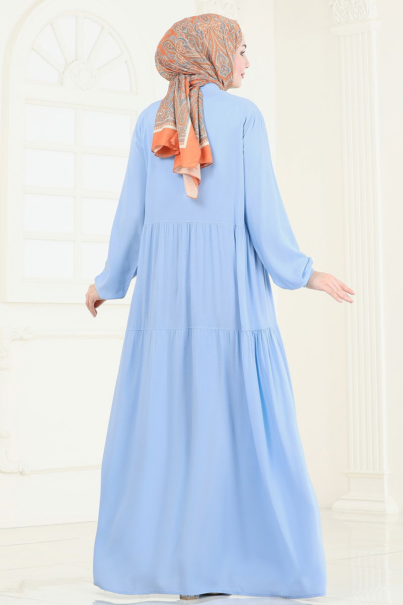 Yarım Düğmeli Viskon Elbise Bebe Mavisi