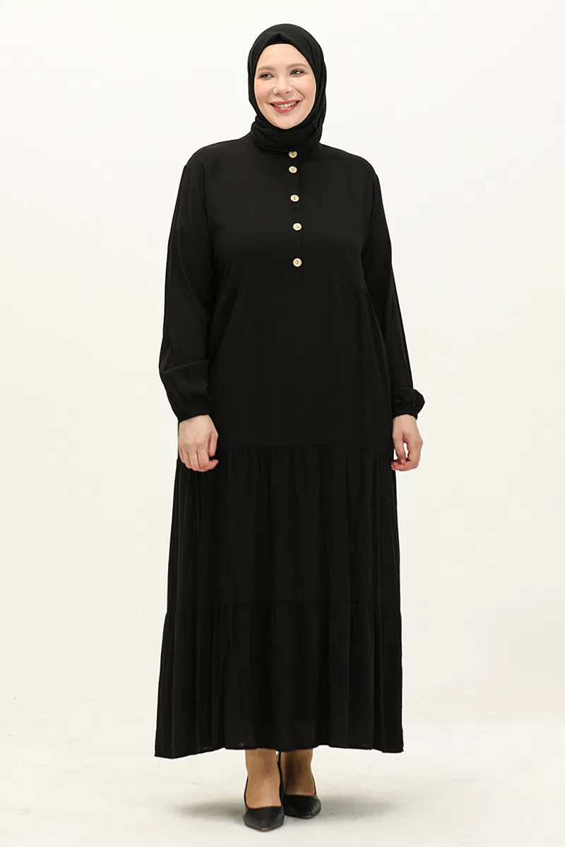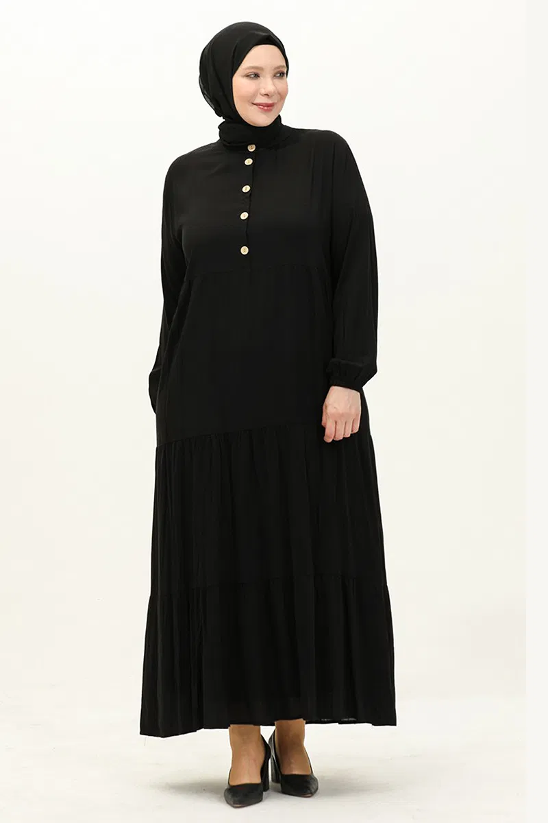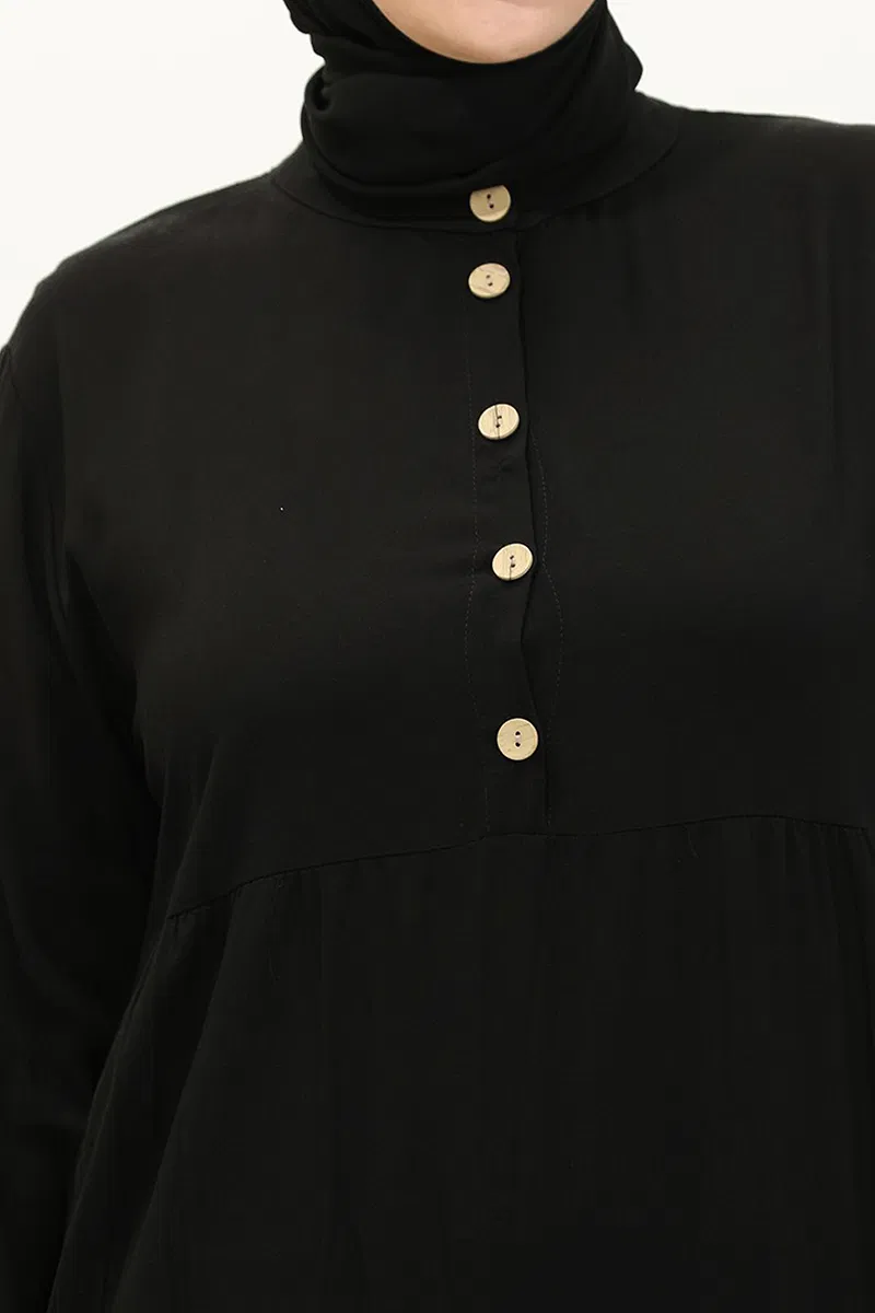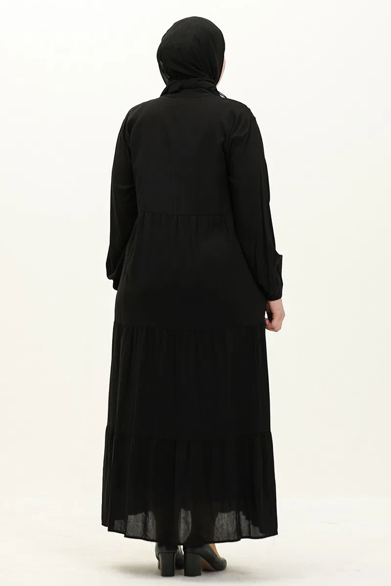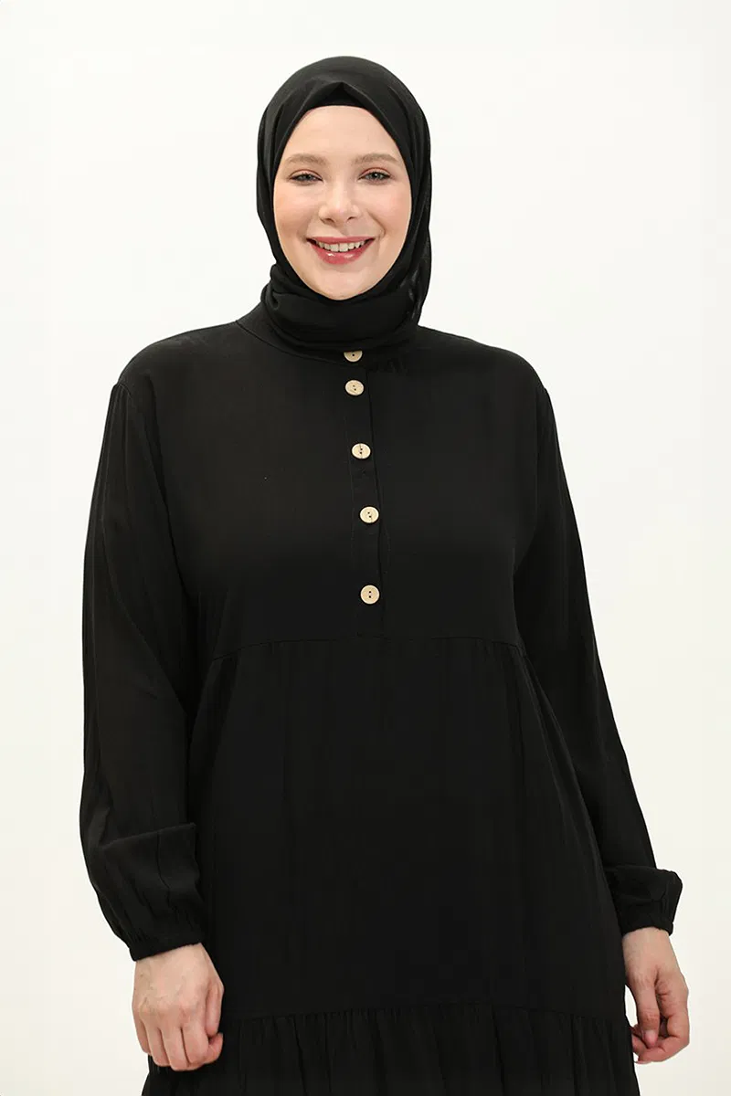 Yarım Düğmeli Viskon Elbise Siyah