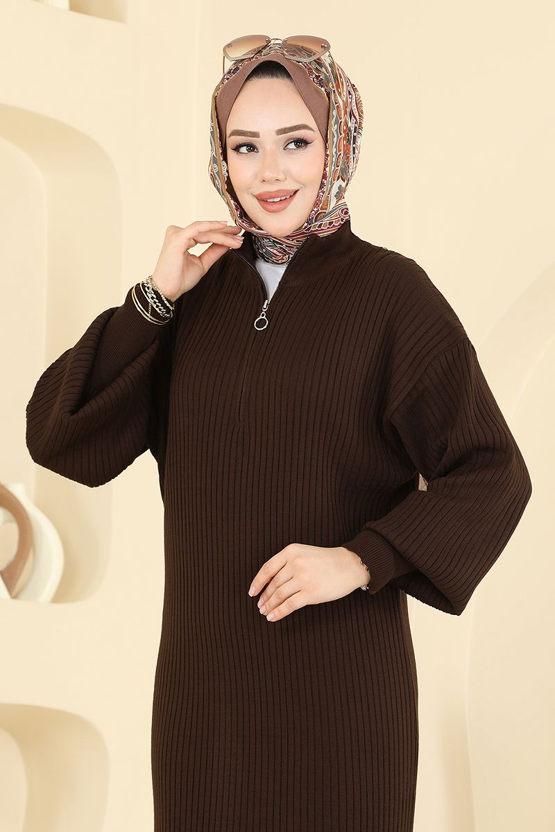 Yarım Fermuar Detaylı Elbise 2770AYD574 Kahve