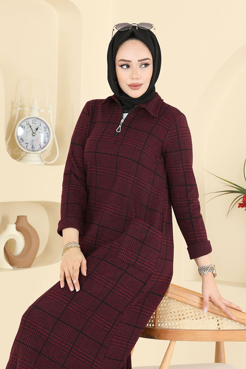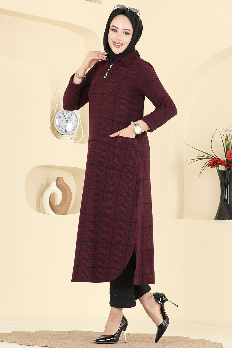 Yarım Fermuarlı Balıksırtı Takım 24010UKB139 Bordo