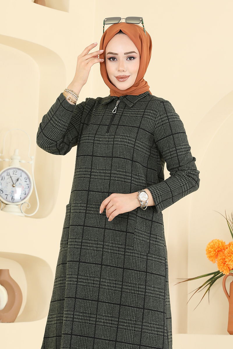 Yarım Fermuarlı Balıksırtı Takım Haki