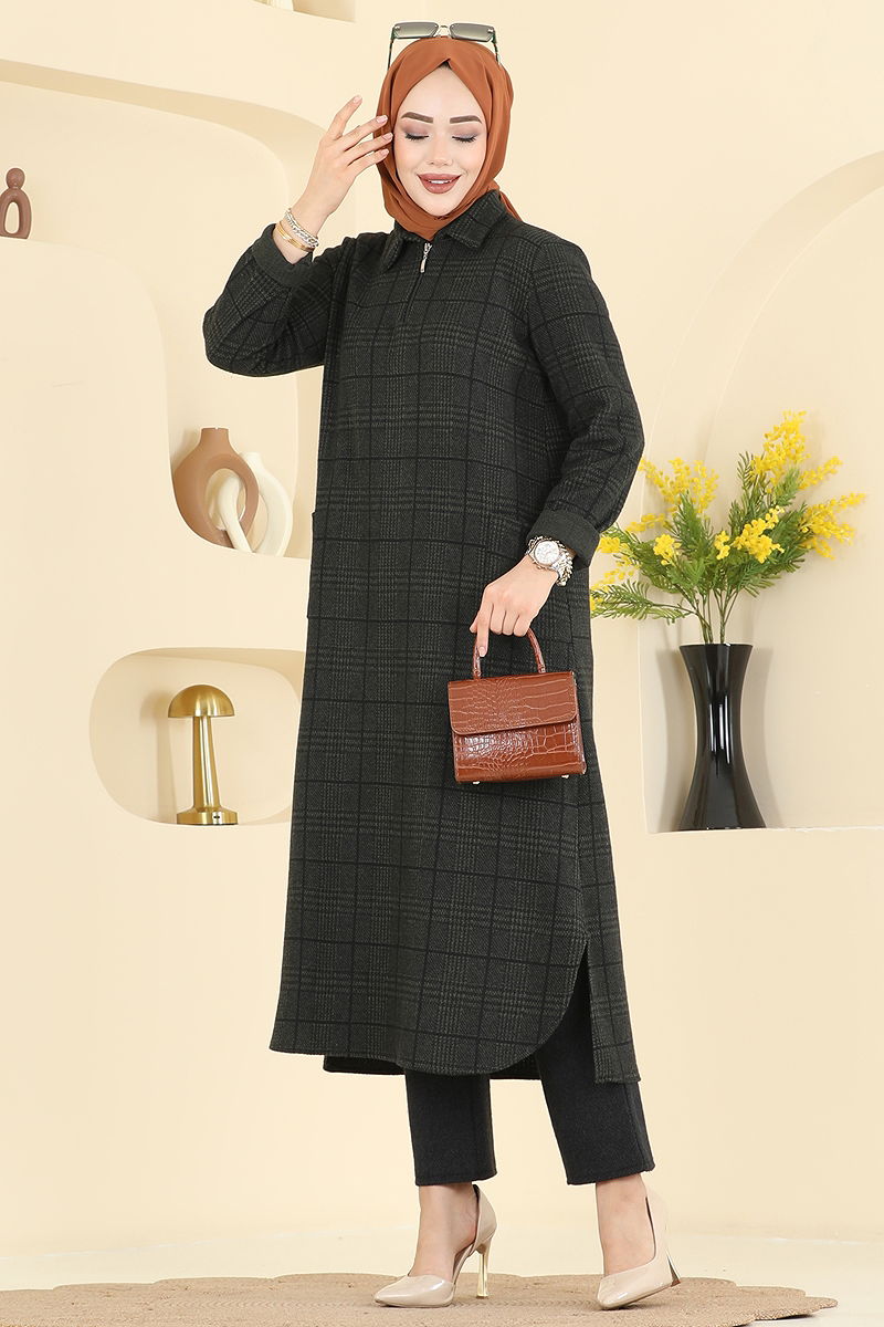 Yarım Fermuarlı Balıksırtı Takım 24010UKB139 Koyu Haki