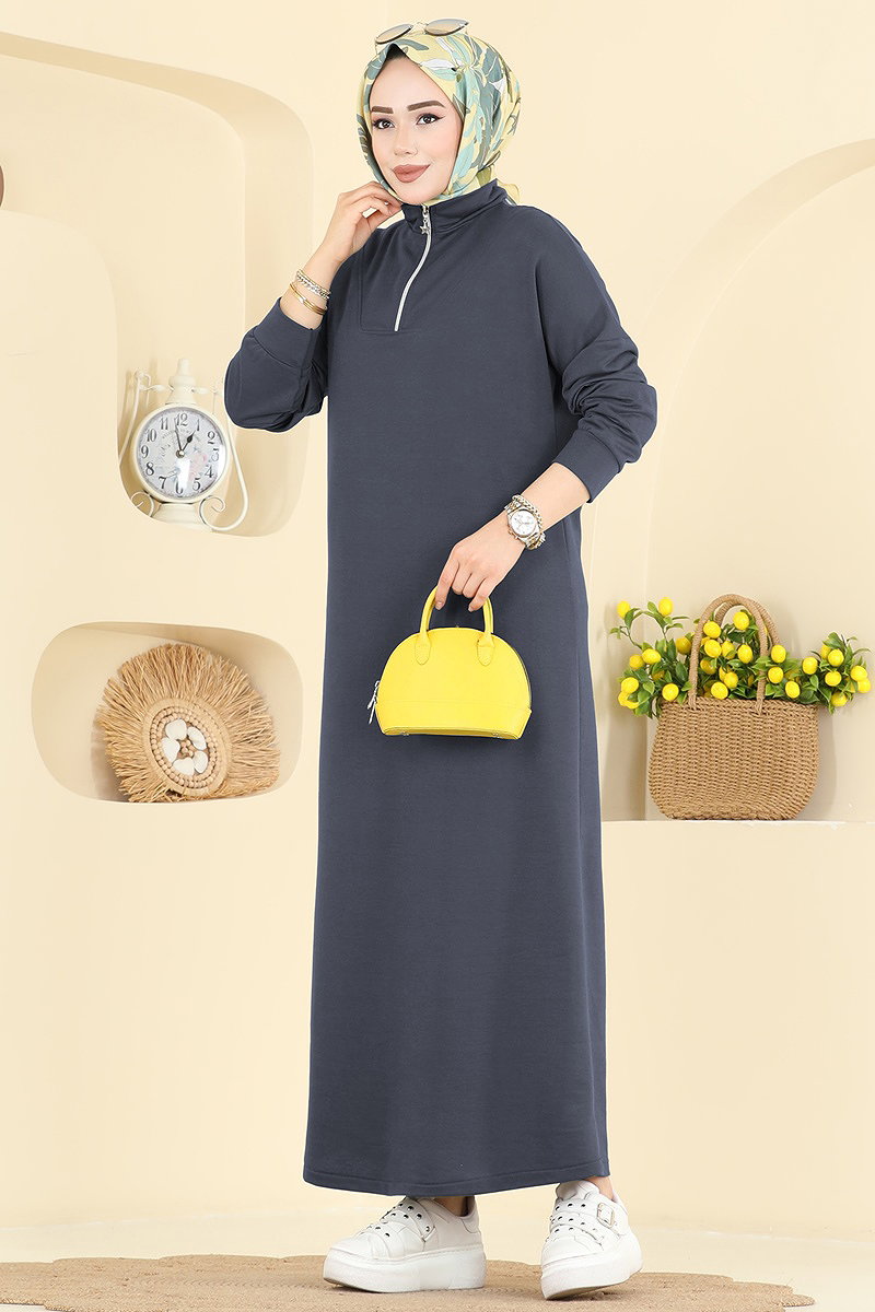Yarım Fermuarlı Elbise Antrasit