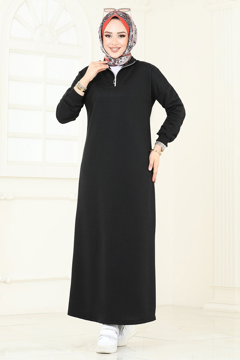 Yarım Fermuarlı Elbise, modern ve şık tasarımıyla dört mevsim rahatlıkla kullanılabilir. Özel iki iplik kumaşı sayesinde konfor sunarken, astarsız yapısı ile hafifliği ön planda tutar. 30 derecede hassas yıkama ile temizlenmesi önerilir. Bu elbise, tesettür giyimine uygun olup, her ortamda şıklığınızı korumanızı sağlar. Modelin üzerindeki 38 beden örnek teşkil etmektedir.