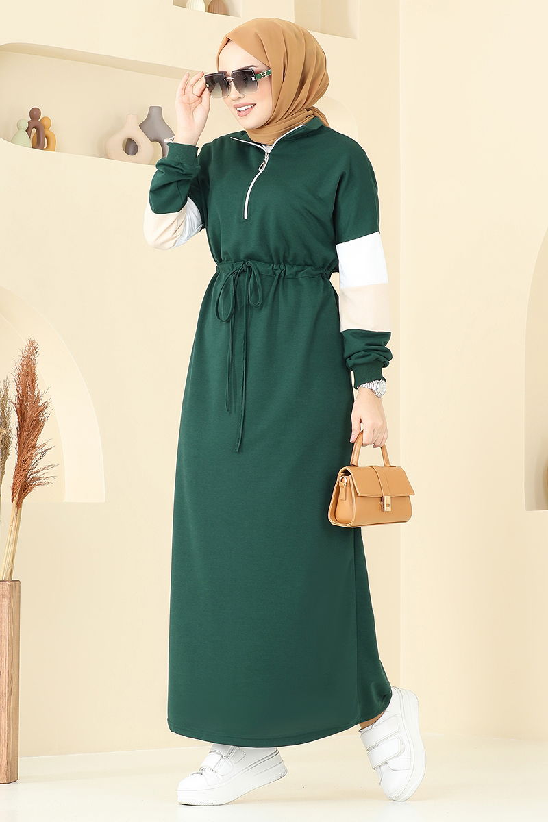 Yarım Fermuarlı Elbise 13369ETT926 Zümrüt
