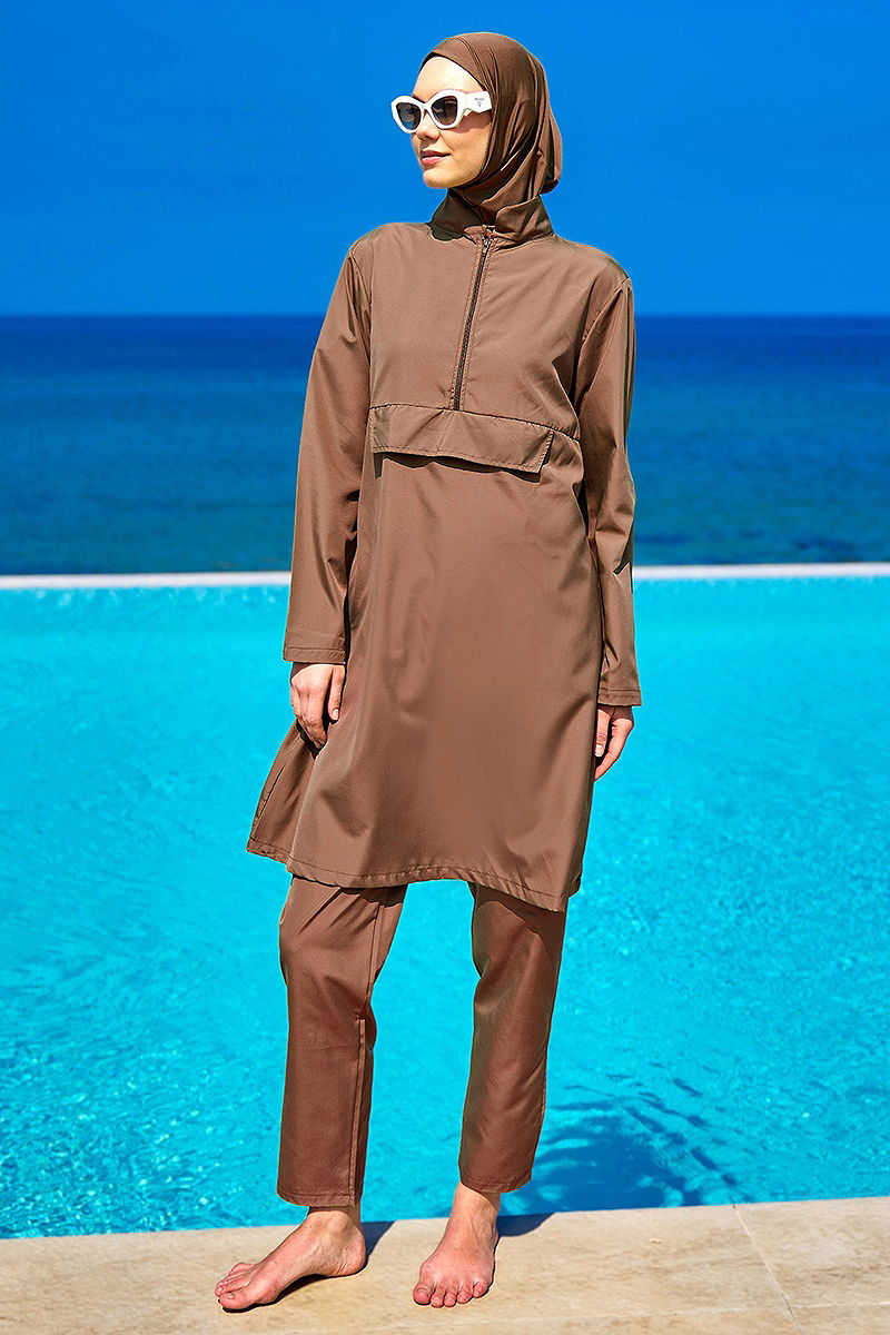 Ürün Özelliği : Yeni sezon tesettür moda ürünüdür. Önden kullanılabilir yarım fermuarı bulunmaktadır. Ürün su itici özelliğe sahiptir.Sudan çıktığınızda kısa sürede kurur ve üzerinize yapışmaz. Ürün Hakim yakadır. Astarsızdır. Bağcıksız yapısı ve çekme ucu sayesinde giyim kolaylığı sunar. Alt mayo lastiklidir. Konsept fotoğraf çekimlerinden dolayı üründe ton farklılığı olabilir.