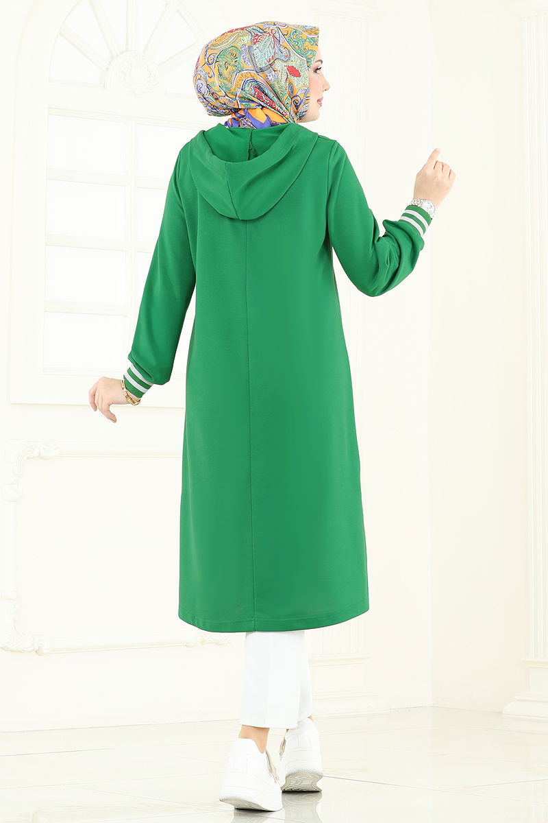 Yarım Fermuarlı Tesettür Tunik Benetton Yeşili