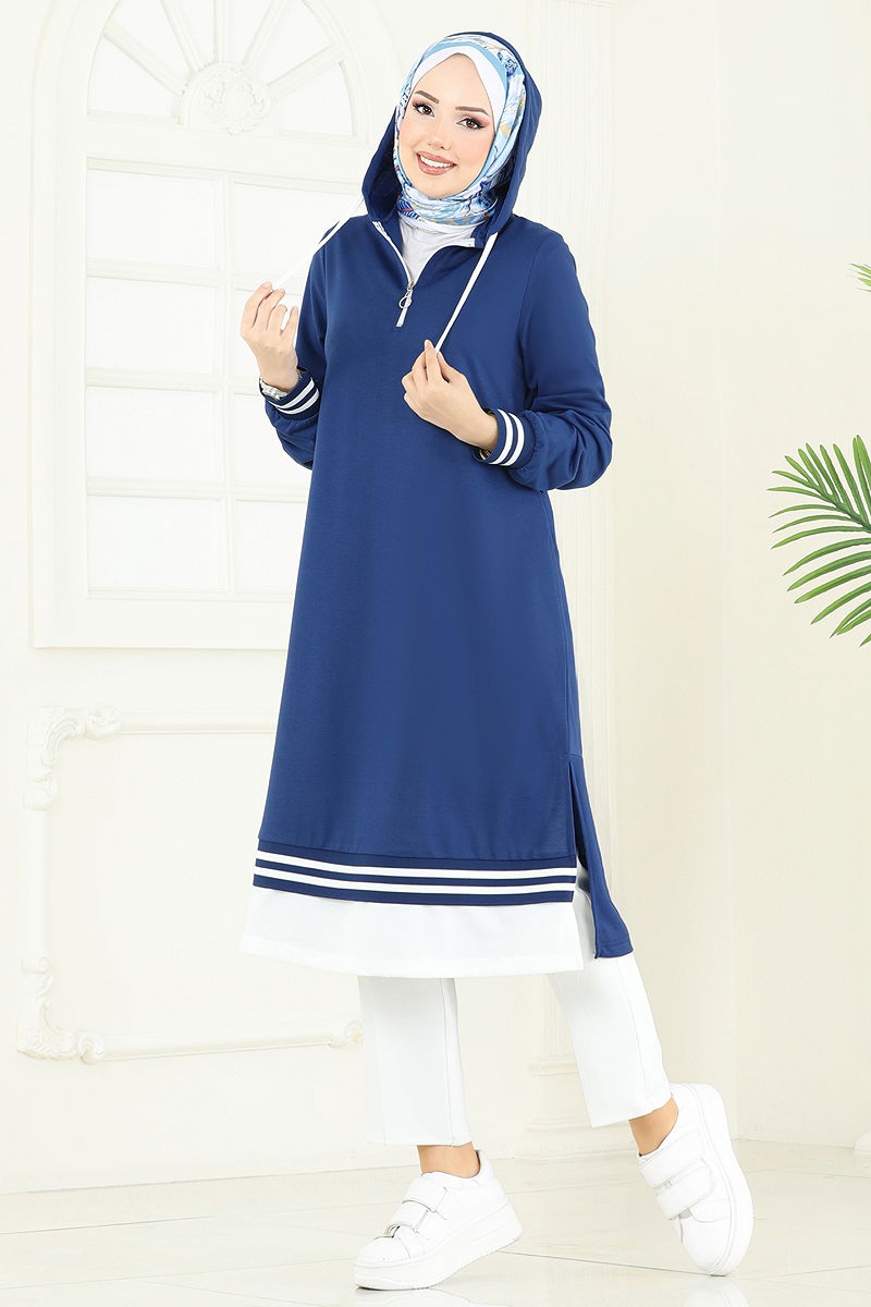 Yarım Fermuarlı Tesettür Tunik İndigo