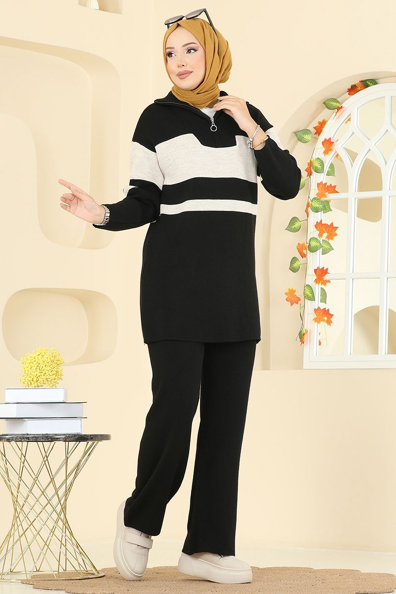 Yarım Fermuarlı Triko Takım Siyah