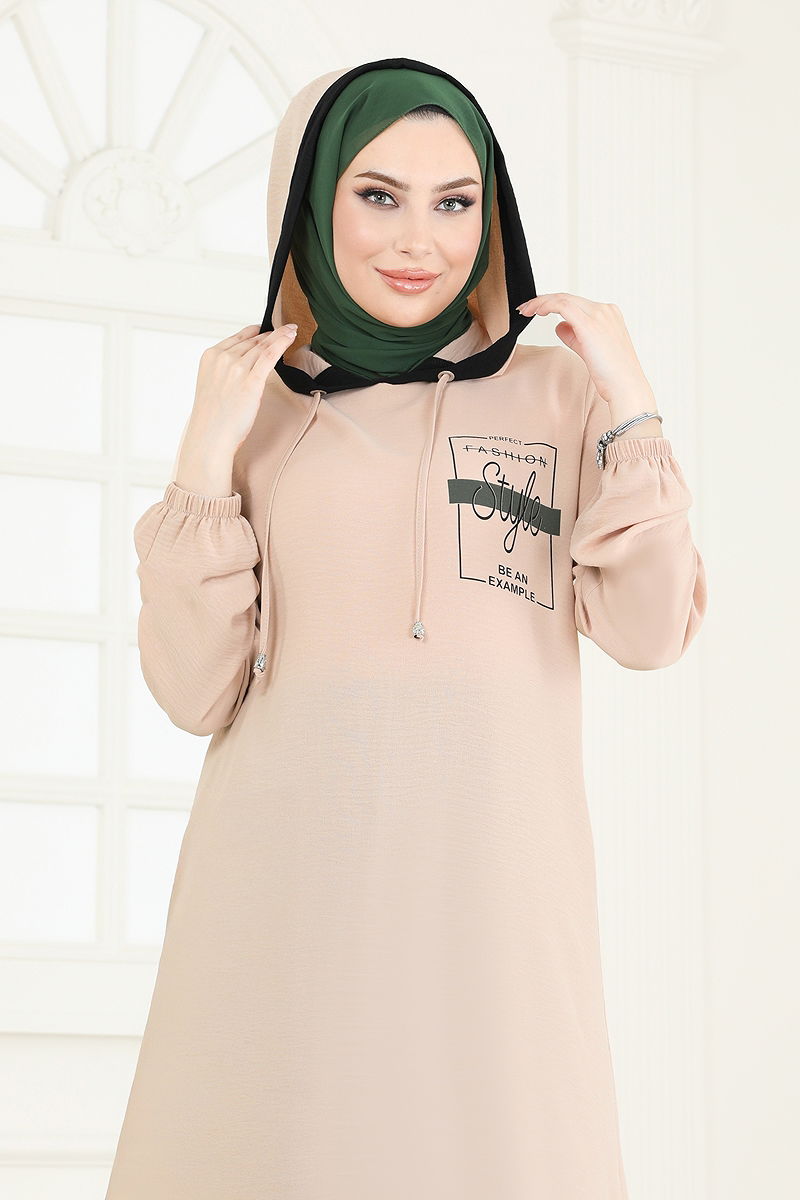 Ürün Özelliği : Yeni sezon tesettür moda ürünüdür. Ürün Kapşonlu yakadır. Tunik yandan yırtmaçlıdır.. Astarsızdır. Kapşon ürüne dikilidir. Yazılar baskıdır. Pantolon beli lastiklidir. Manşet lastiklidir. Konsept fotoğraf çekimlerinden dolayı üründe ton farklılığı olabilir.