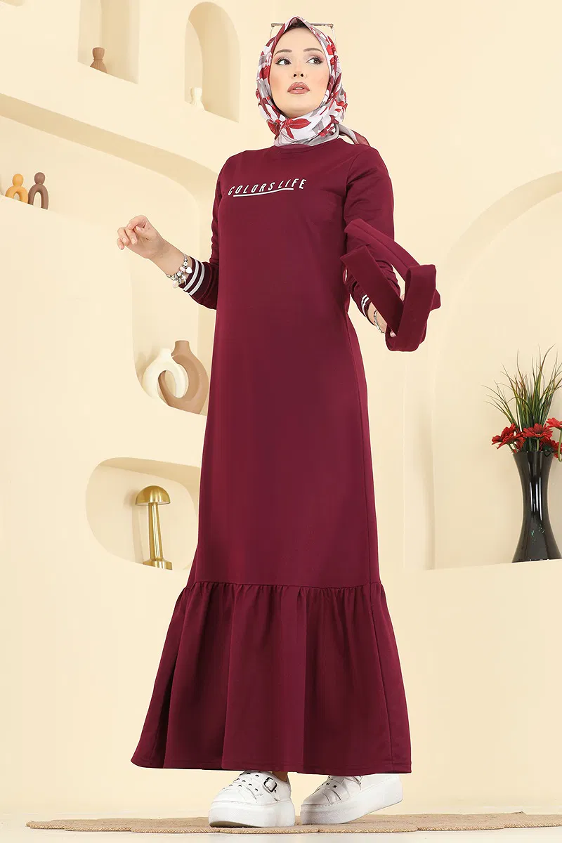 Yazı Baskılı İki İplik Elbise 715PM271 Bordo