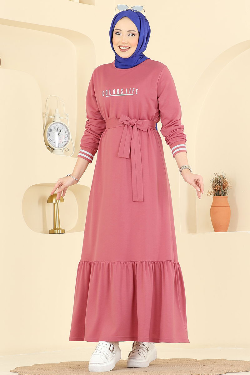 Yazı Baskılı İki İplik Elbise 715PM271 Gül Kurusu