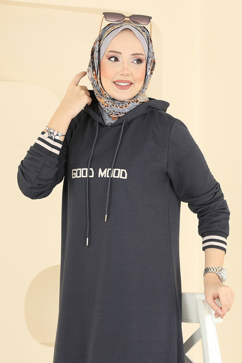 Yazı Baskılı İki İplik Elbise 717PM271 Antrasit