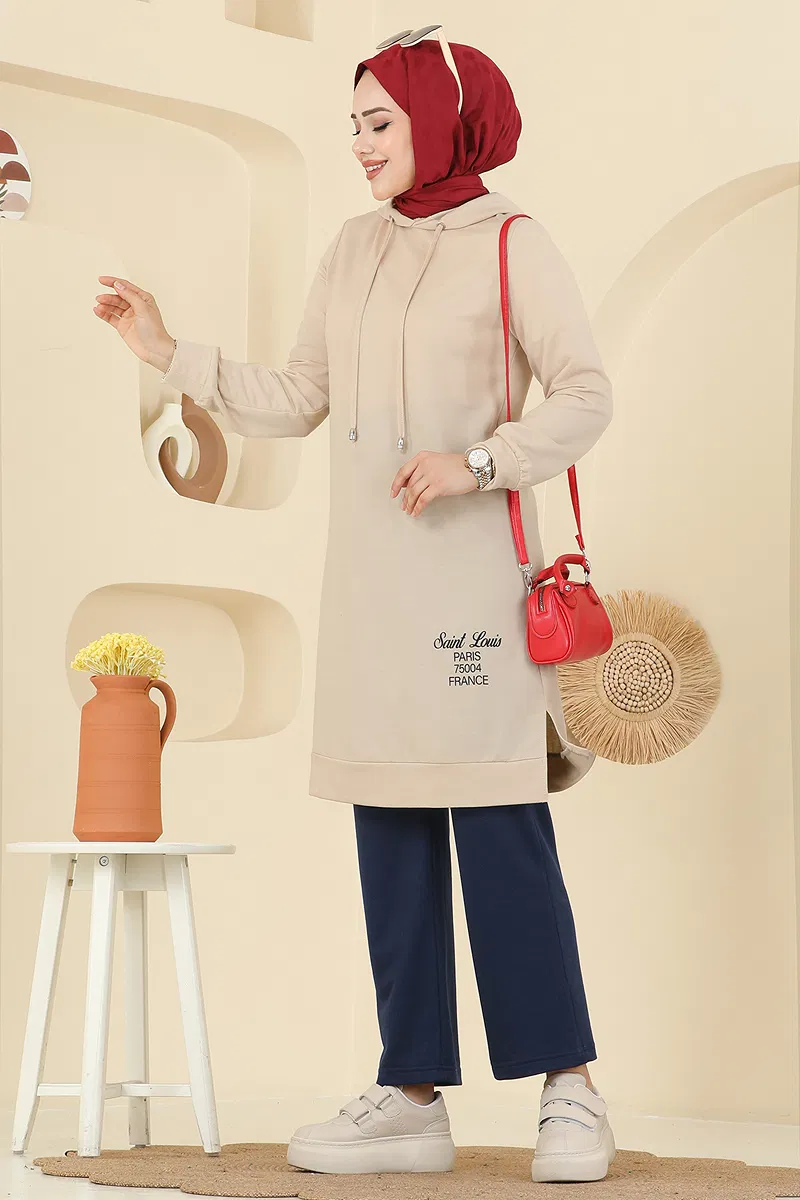 Ürün Özelliği : Yeni sezon tesettür moda ürünüdür. Yaka bağcık aktiftir. Ürün Kapşonlu yakadır. Tunik yandan yırtmaçlıdır.. Astarsızdır. Yazılar baskıdır. Kapşon ürüne dikilidir. Pantolon beli lastiklidir. Manşet lastiklidir.Konsept fotoğraf çekimlerinden dolayı üründe ton farklılığı olabilir.