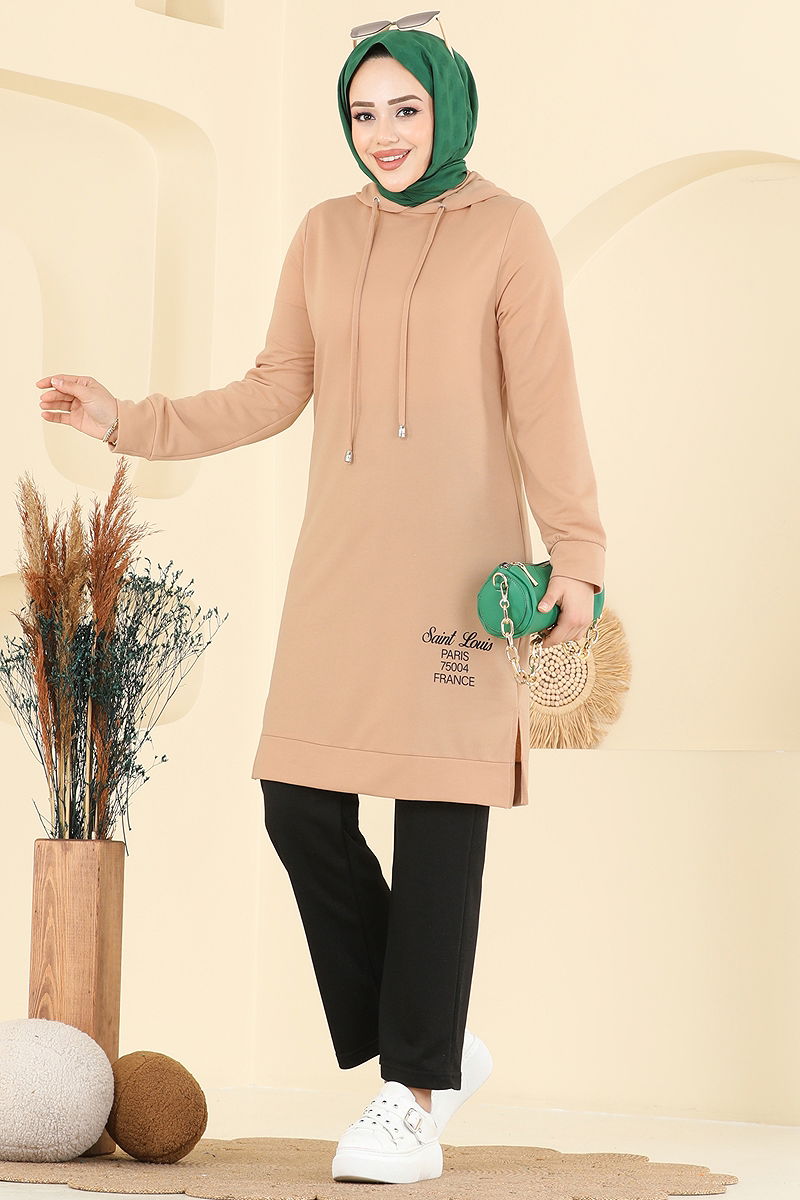 Ürün Özelliği : Yeni sezon tesettür moda ürünüdür. Yaka bağcık aktiftir. Ürün Kapşonlu yakadır. Tunik yandan yırtmaçlıdır.. Astarsızdır. Yazılar baskıdır. Kapşon ürüne dikilidir. Pantolon beli lastiklidir. Manşet lastiklidir.Konsept fotoğraf çekimlerinden dolayı üründe ton farklılığı olabilir.