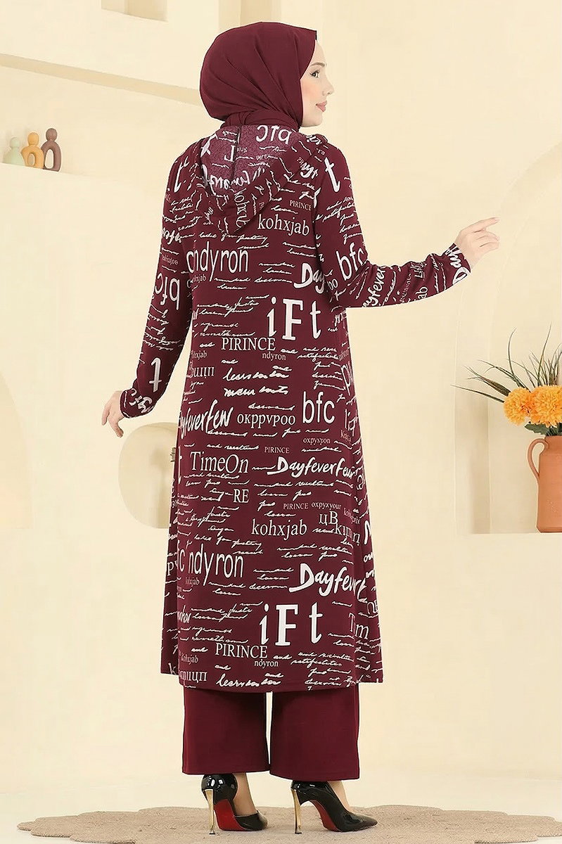 Yazı Baskılı Üçlü Takım 2525ERK1158 Bordo