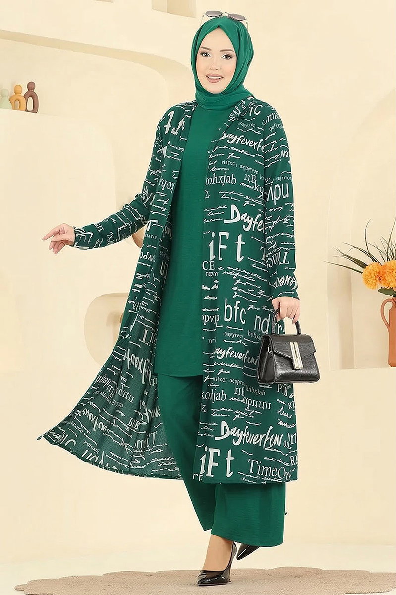 Yazı Baskılı Üçlü Takım Zümrüt