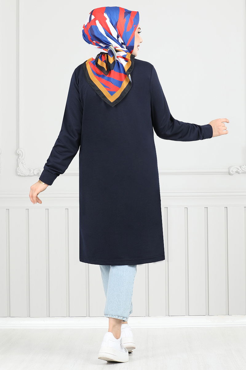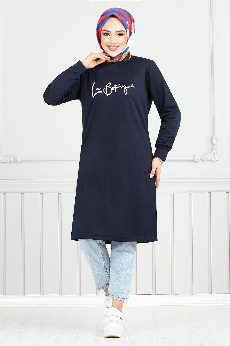 The Yazısı Simli Modest Tunic is a versatile piece that can be comfortably worn in all seasons. Made from double thread fabric, this tunic features a crew neck design that offers a contemporary look. The textual prints add a unique charm to the tunic. It is easy to care for; simply reverse wash and iron on the reverse to preserve the printed details. Enjoy being stylish with the size M model.