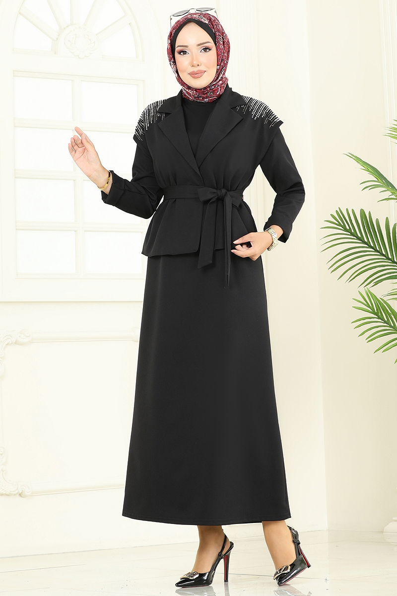 Ürün Özelliği : Yeni sezon tesettür moda ürünüdür. Sırttan kullanılabilir bir düğmesi bulunmaktadır. Ürün Bisiklet yakadır. Astarsızdır. Taşlar yapıştırmadır. Kemer ürüne dahildir, isteğe bağlı kullanılmayabilir. Konsept fotoğraf çekimlerinden dolayı üründe ton farklılığı olabilir.