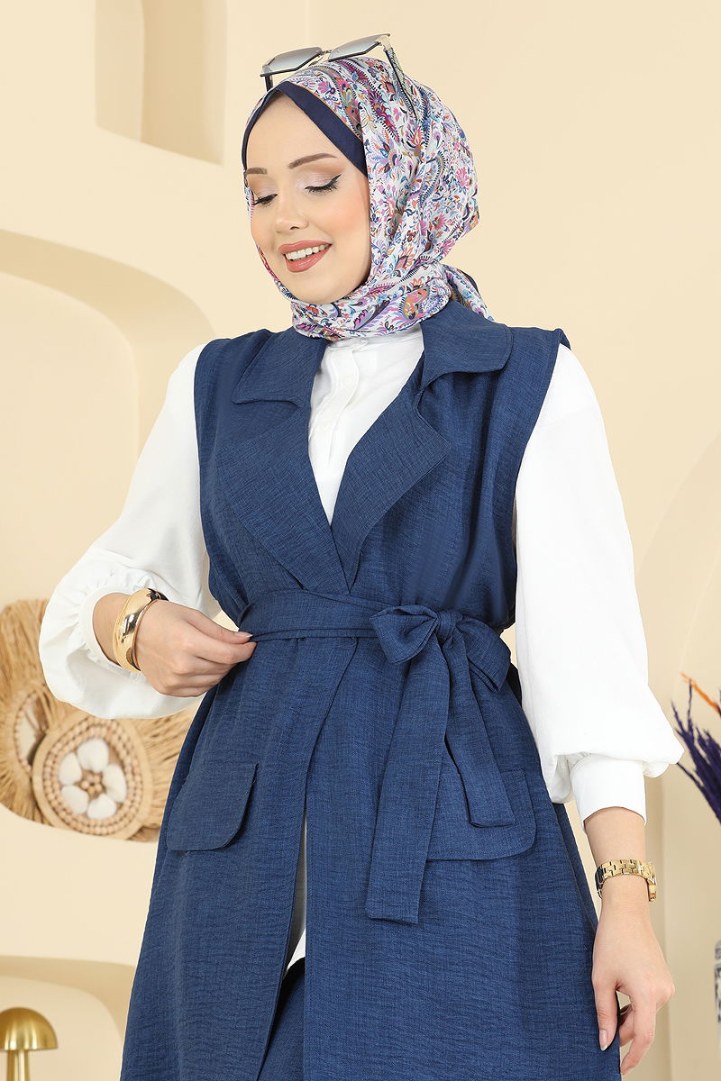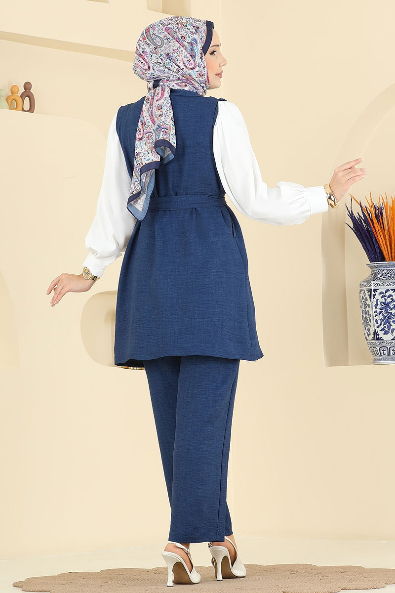 Yelekli Sofia Üçlü Takım en yeni model tesettür ürünü olarak dikkat çekiyor. Dört mevsim rahatlıkla giyebileceğiniz bu ürün, 30 derecede hassas yıkama özelliği ile kullanım kolaylığı sağlar. Sofia keten kumaştan üretilmiş olan bu takım, şıklığı ve konforu bir arada sunar. Yarım hakim yaka ve yarım düğmeli ön tasarımı ile modern bir görünüme sahip. Ürün astarsızdır ve belinde bulunan lastik sayesinde gün boyu rahat bir kullanım sunar. Kombini tamamlayan yelek ve pantolon, pratikliği ve şık detayları ile ön plana çıkar. Pantolon beli elastiktir ve kemer, takıma dahil olup isteğe bağlı kullanılmayabilir. Şık görünümün yanı sıra, manşet düğmeleri aktif olan bu takımda cep detayları da aksesuar olarak yer almaktadır.