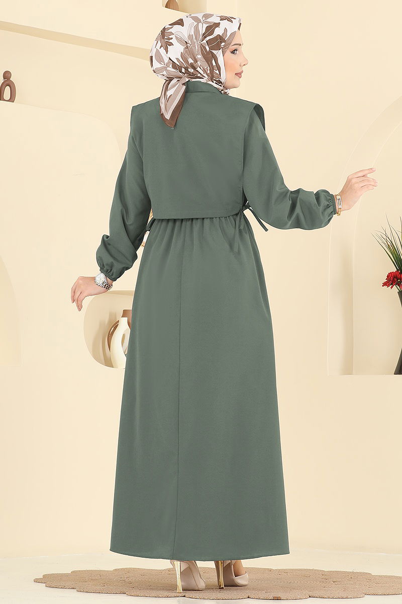 Yelekli Terikoton Elbise Takım 3059KTR750 Küf Yeşili
