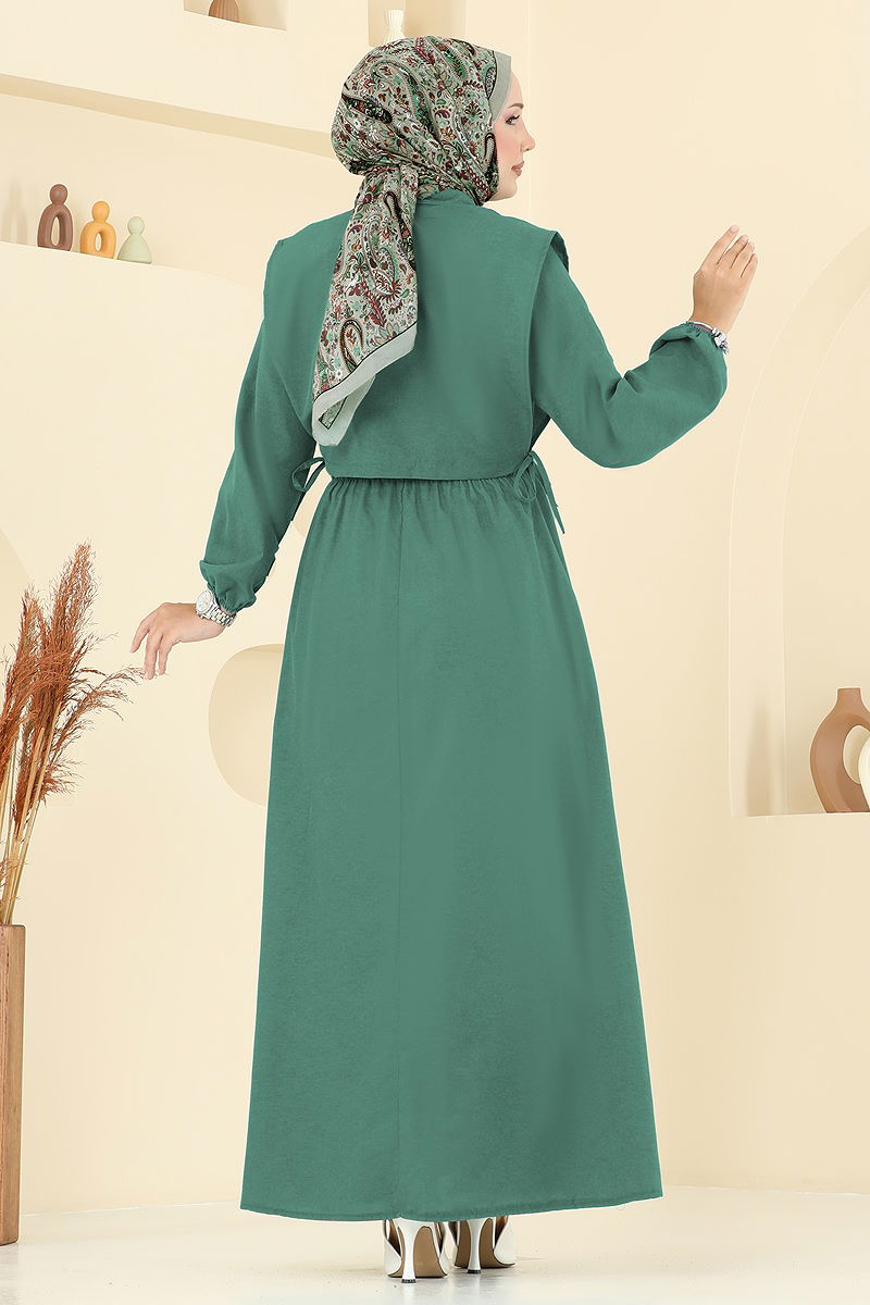Yelekli Terikoton Elbise Takım Zümrüt