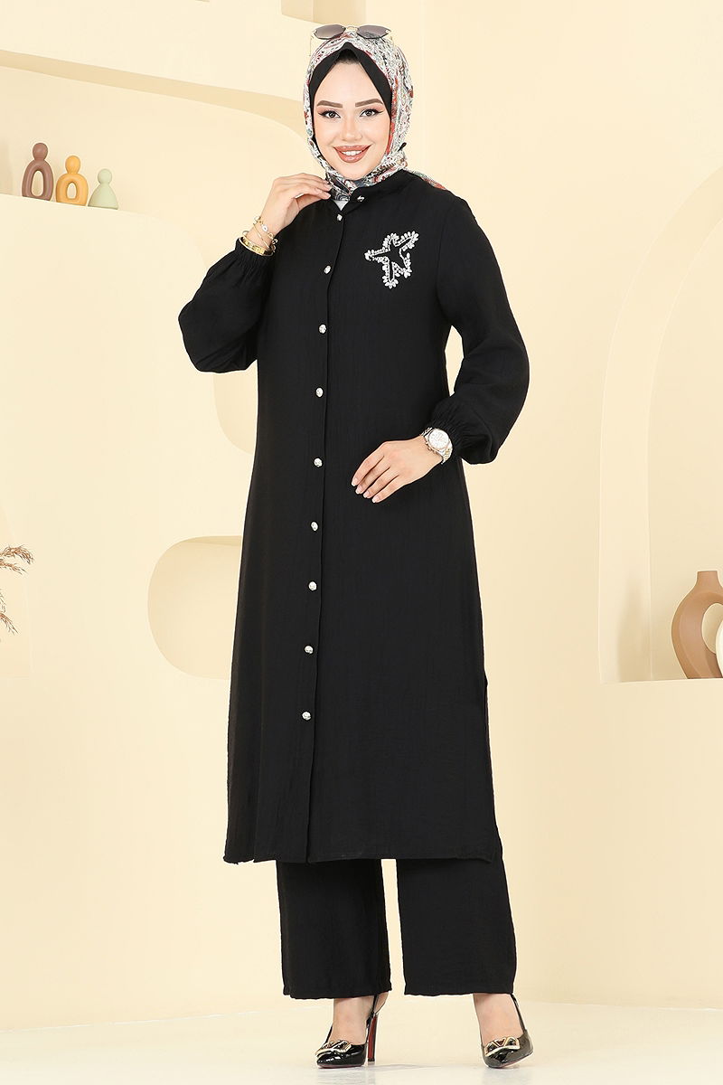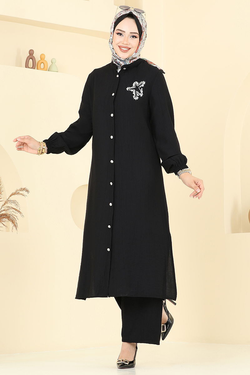 Yıldız Detaylı Tesettür Takım Siyah