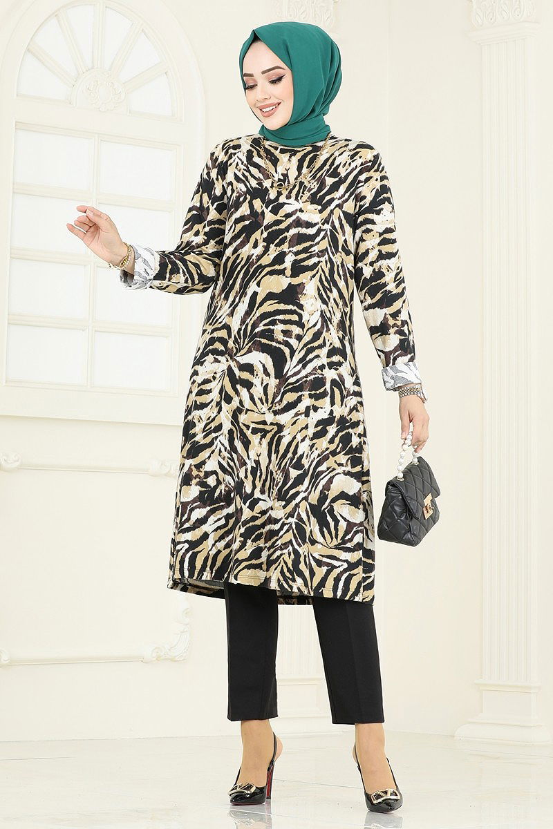 Yırtmaç Detaylı Desenli Tunik Desen 1 Vizyon