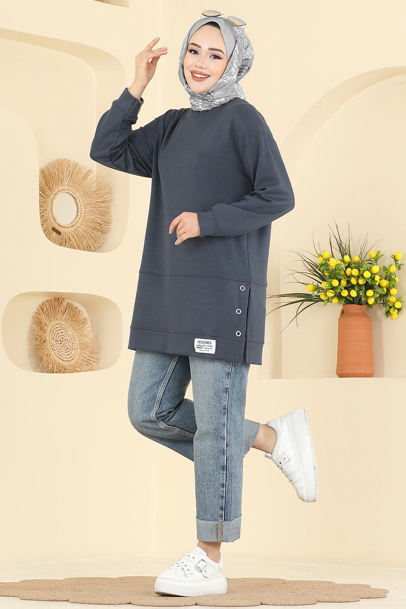 Yırtmaç Detaylı Modal Tunik 2630MSZ1172 Açık Antrasit