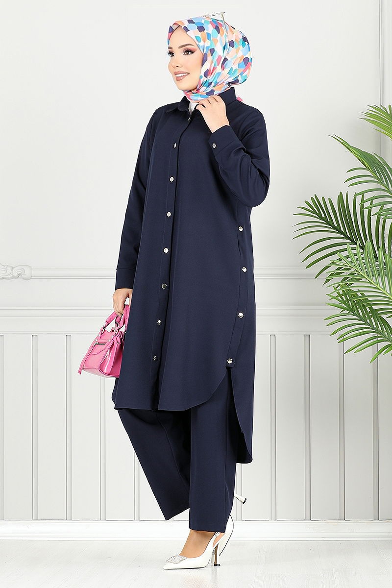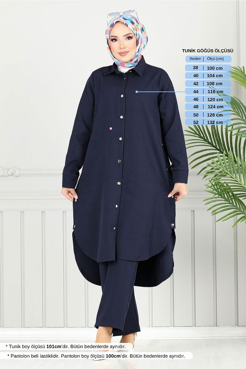 Ürün Özelliği : Yeni sezon tesettür moda ürünüdür. Ürün Gömlek yakadır. Ürün Önden düğmelidir. Yırtmaç düğmeleri aktiftir.. Astarsızdır. Pantolon beli lastiklidir. Konsept fotoğraf çekimlerinden dolayı üründe ton farklılığı olabilir.