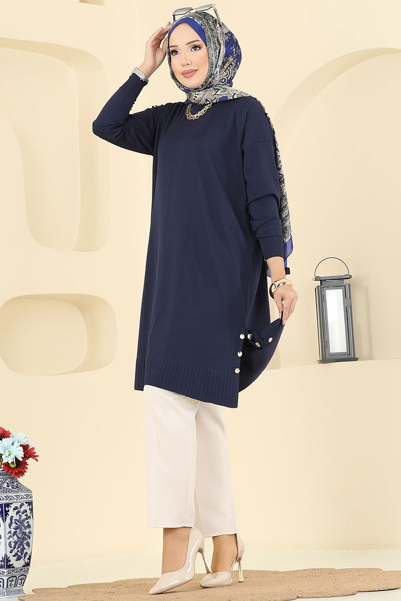Yırtmaç Düğmeli Merserize Tunik Laci