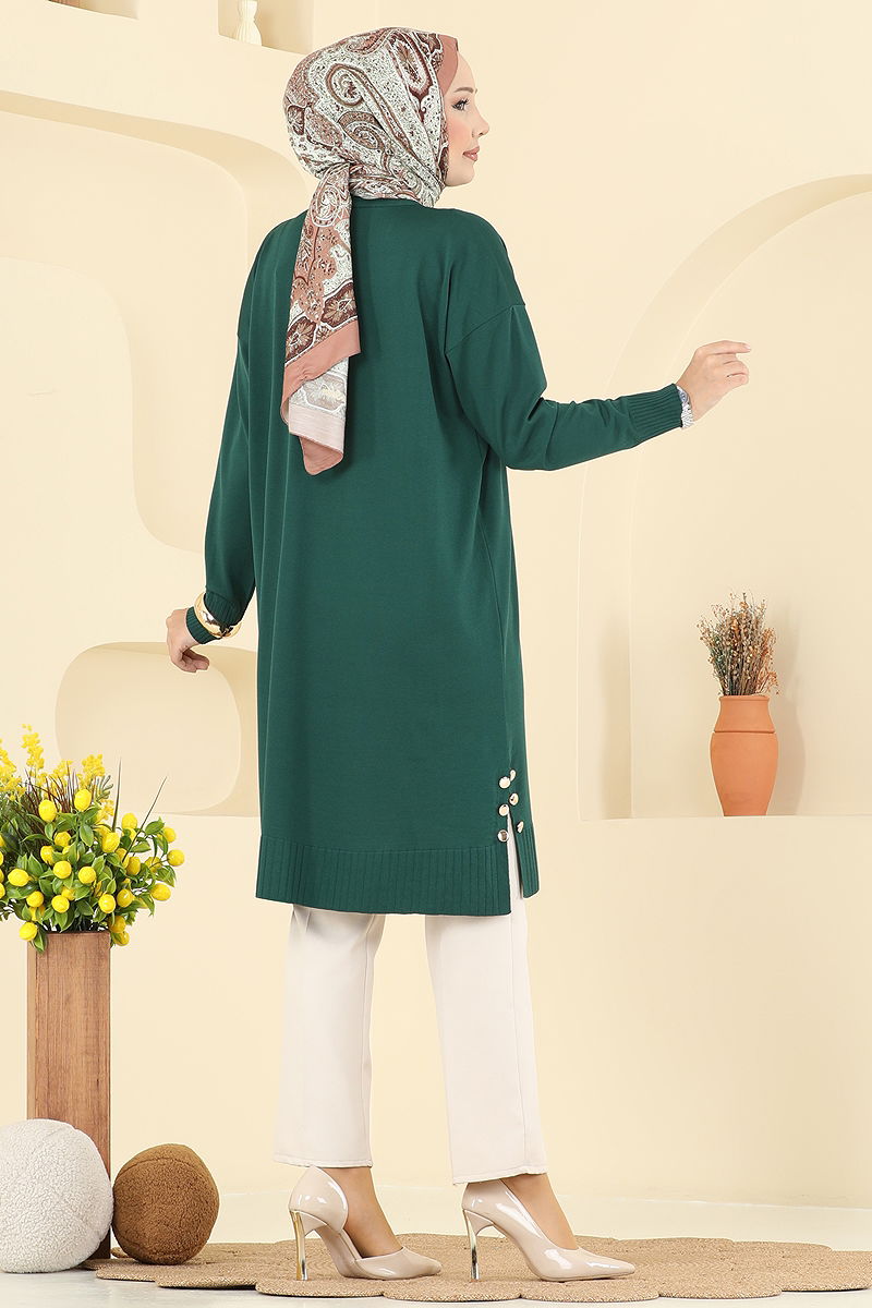 The Slit Buttoned Mercerized Tunic offers modern and elegant design to warm your autumn and winter days. Washable in delicate program at 30 degrees, this tunic is made from Mercerized fabric. Featuring a crew neck and decorative slit buttons, this eye-catching model is unlined and available in standard sizes (36-38-40-42-44). Designed for optimal comfort and style, this tunic is perfect for standing out in any setting.
