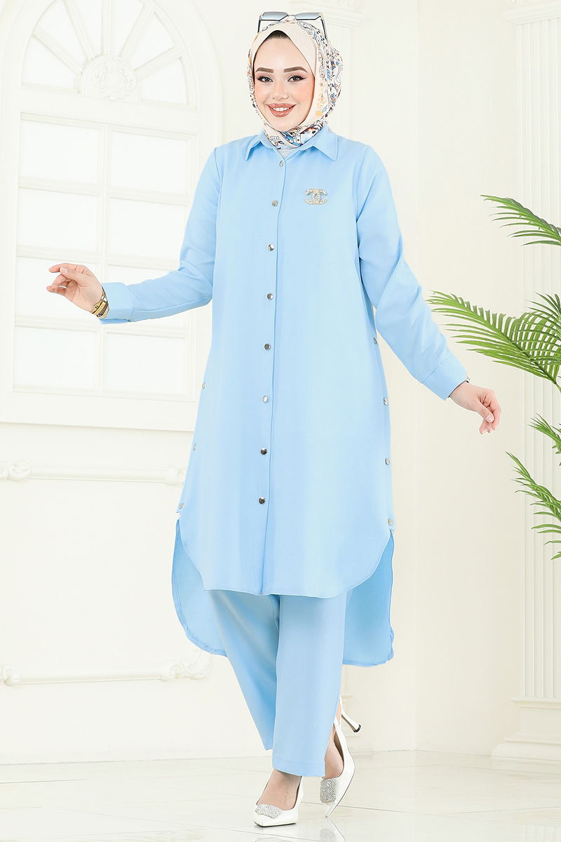 Product Feature : It is a new season hijab fashion product. The product has a Shirt collar. The product has From the front buttons. Slash buttons are active.. Unlined. Accessories are not included. Blouse is not included. Sample combination is made with the blouse to show the intended use of the product. The waist of the trousers is elastic. Cuff buttons are active. There may be a tonal difference in the product due to concept photo shoots.