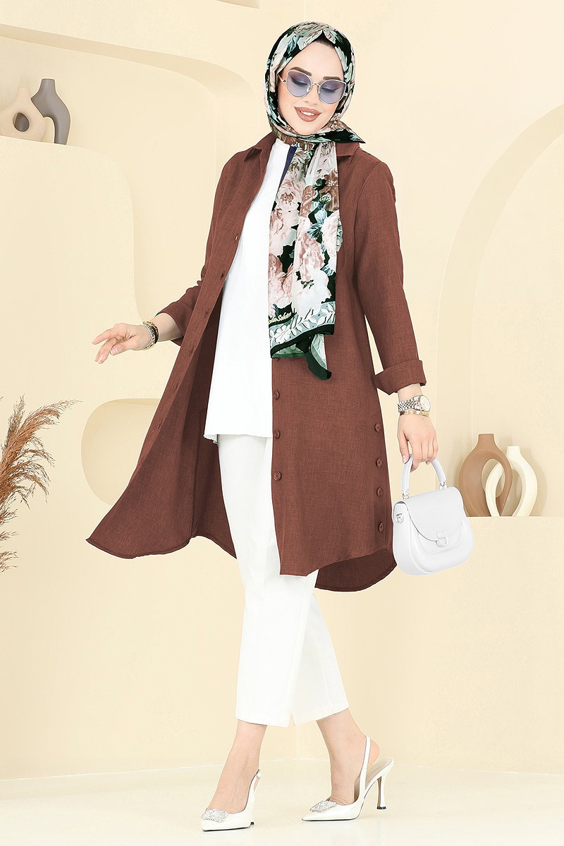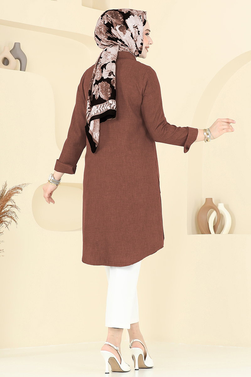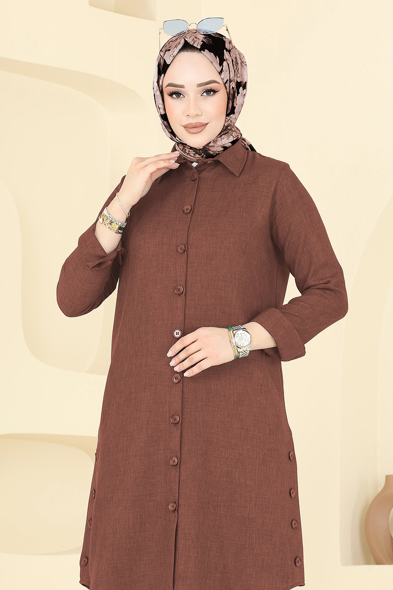 Yırtmaç Düğmeli Tunik 3047KTR750 Kahve