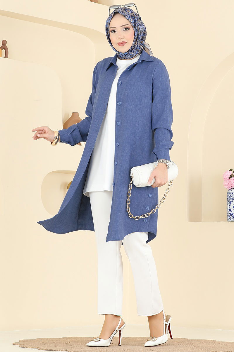 Yırtmaç Düğmeli Tunik 3047KTR750 Koyu Mavi
