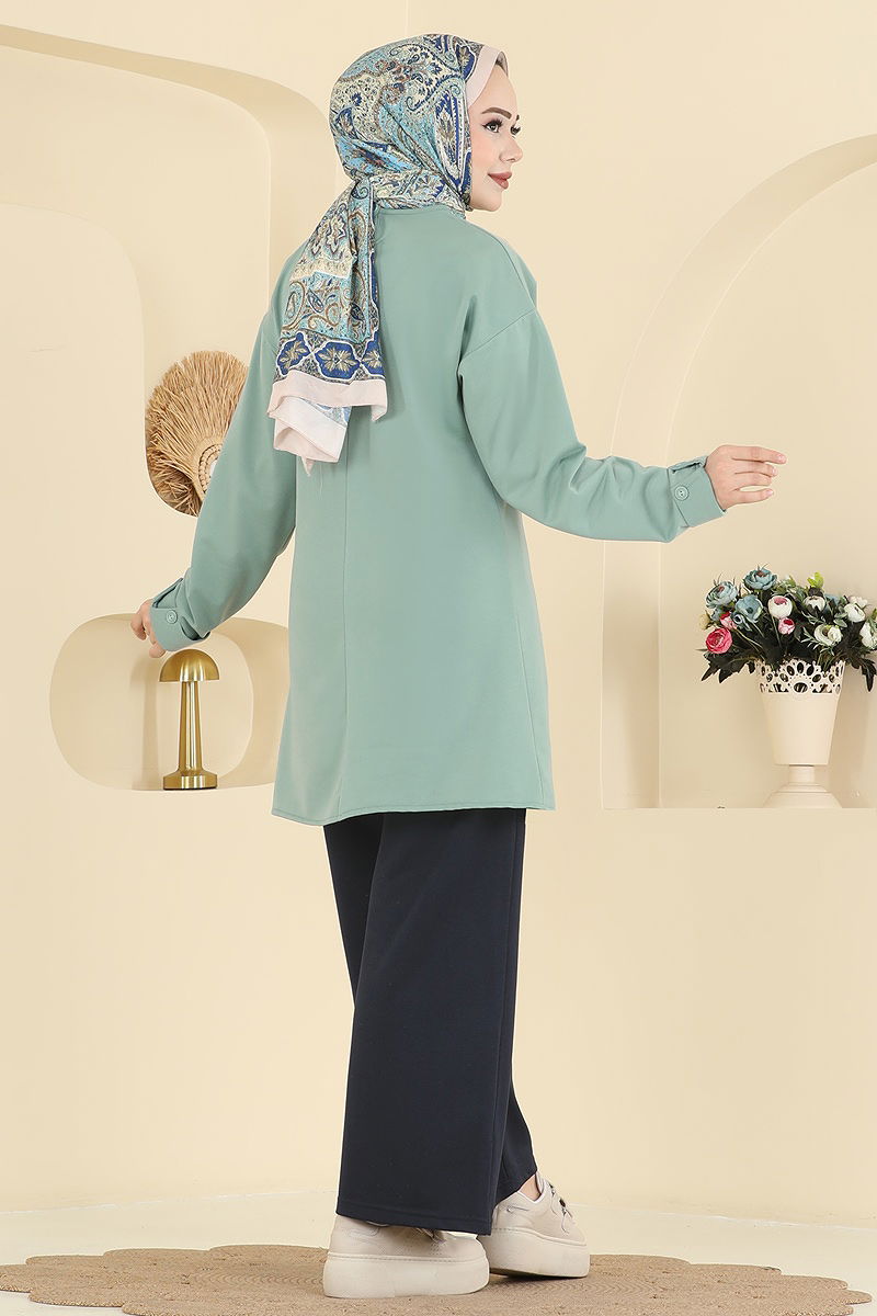 Yırtmacı Aksesuar Düğmeli Takım PL9181 Mint&Laci