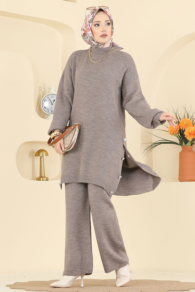 Ürün Özelliği : Yeni sezon tesettür moda ürünüdür. Ürün Bisiklet yakadır. Yırtmaç düğmeleri aktiftir.. Astarsızdır. Pantolon beli lastiklidir. Konsept fotoğraf çekimlerinden dolayı üründe ton farklılığı olabilir.