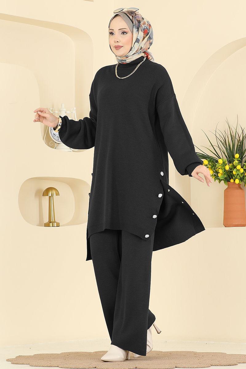 Yırtmacı Düğme Detaylı Takım 2763AYD574 Siyah