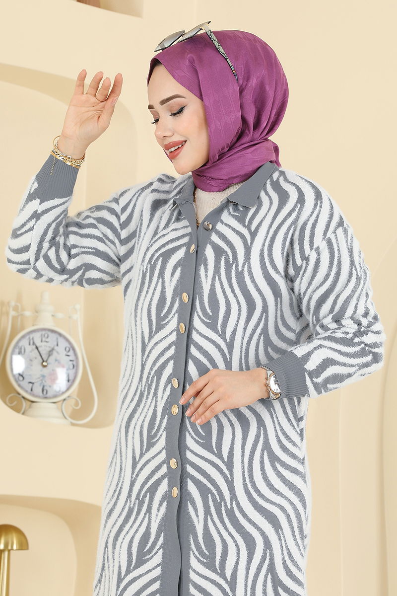 Zebra Desenli Triko Hırka 3286BRZ597 Gri