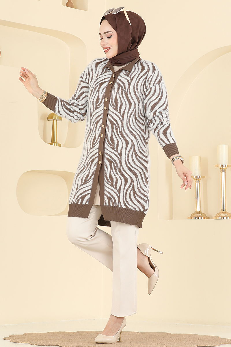 Zebra Desenli Triko Hırka 3286BRZ597 Koyu Vizyon