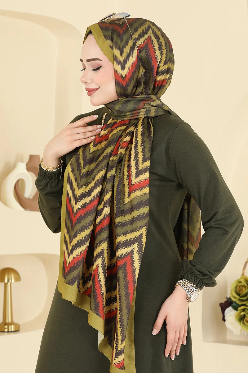 Zikzak Desen Soft Şal Serisi 210MDI1081 Yağ Yeşili