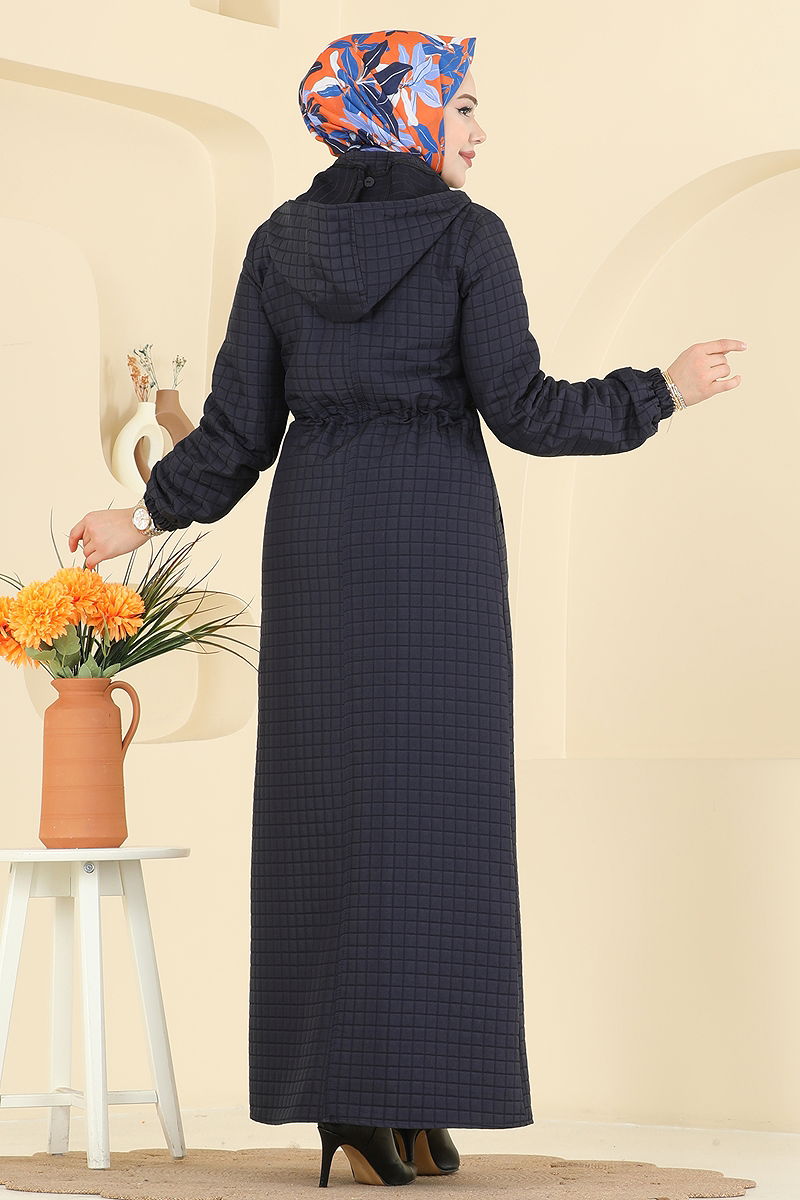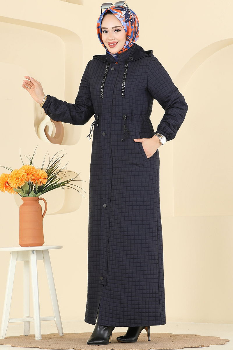 Yeni sezonun zarif tasarımı Zincir Askılı Kapitone Ferace ile tanışın! Sonbahar ve Kış aylarını sıcak tutacak bu özel ferace, hassas 30 derecede yıkanabilen kapitone kumaştan üretilmiştir. Kapşonlu ve gizli düğmeli yapısıyla modern ve şık bir görünüme sahip olan bu ferace, ayarlanabilir bel bağcıkları ile rahat bir kullanım sunar. Seyyar kapüşonu isteğe bağlı çıkarılabilirken, şık demir zincir askıları tarzınıza tarz katar. Önden erişilebilen gizli fermuarı ve pratik cepleri ile fonksiyonellikten ödün vermez. Manşetlerindeki lastik sayesinde gün boyu konfor sağlar. Kış gardırobunuzun vazgeçilmezi olmaya aday!