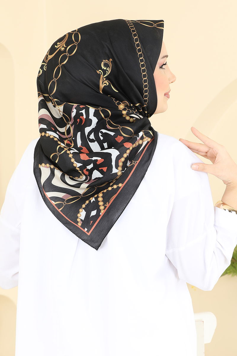 Zincir Desen Soft Eşarp Serisi 209MDI1081 Siyah