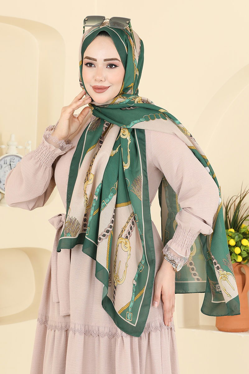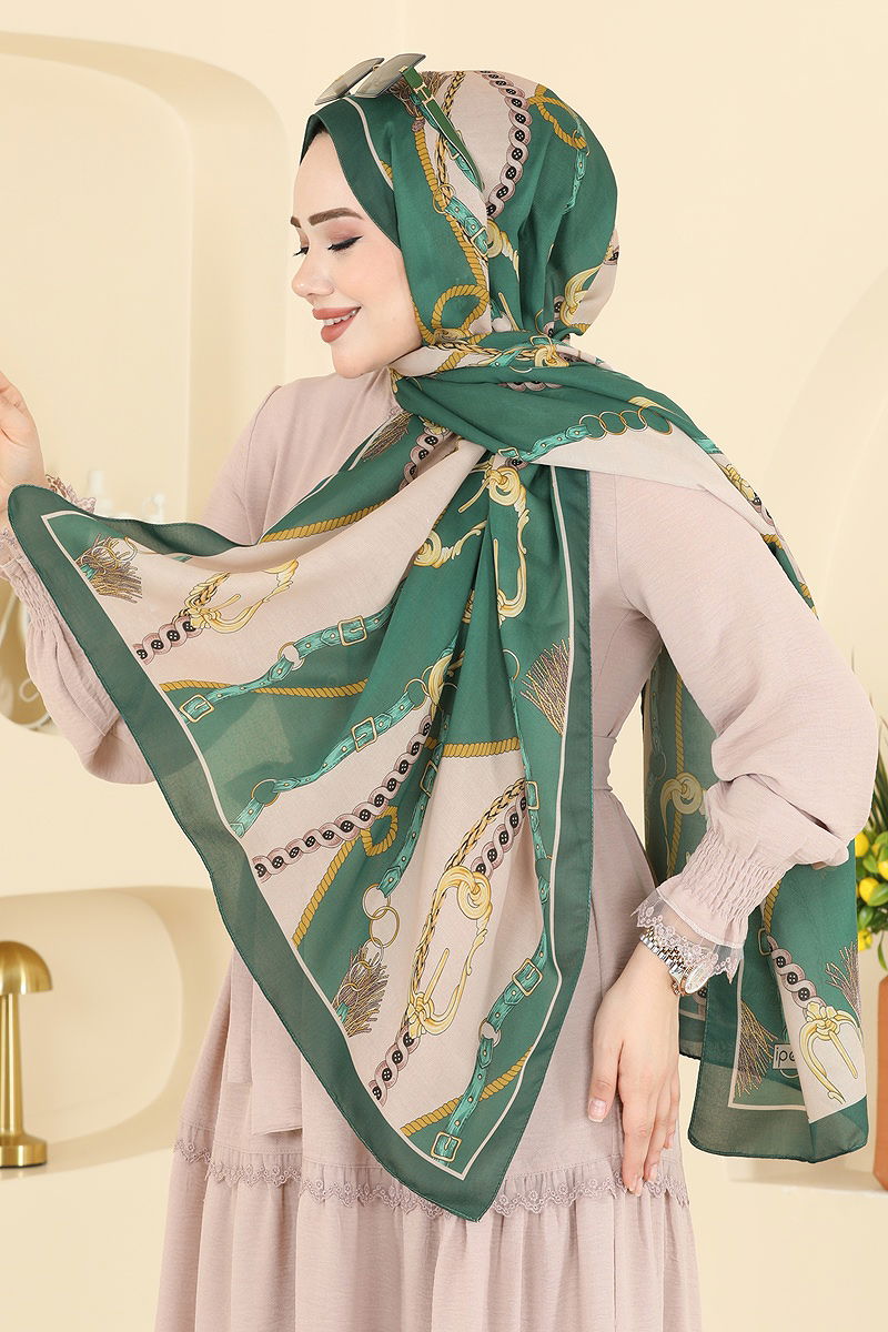 Zincir Desen Soft Şal Zümrüt