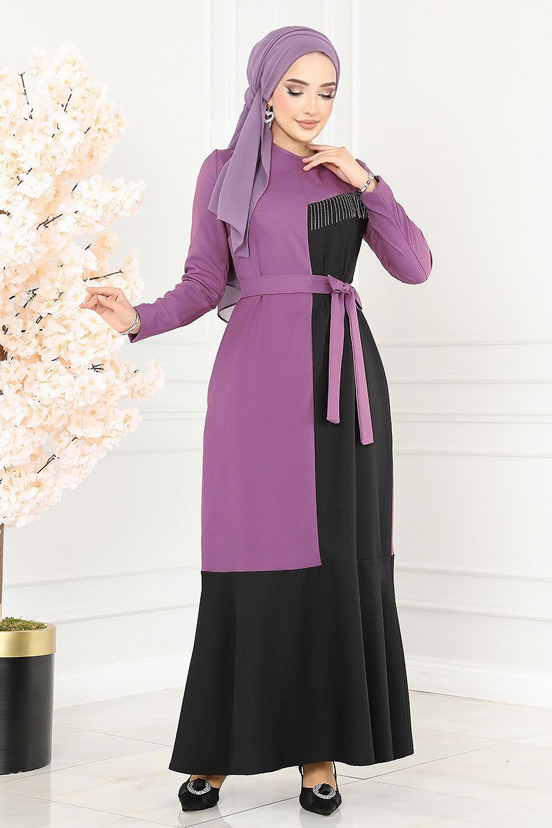 Zincirli Tesettür Elbise ASM2692 Lila